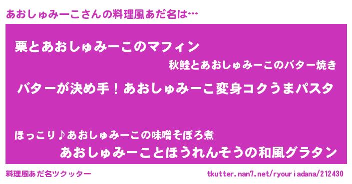 | 女子向けラノベタイトル風あだ名 | 『あおしゅみーこ恋絵巻』 |