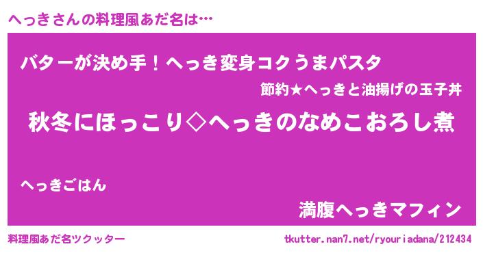 | ピコ太郎風あだ名 | 『ヘヘ太郎』『ピコヘ郎』『ヘコ一郎』 |