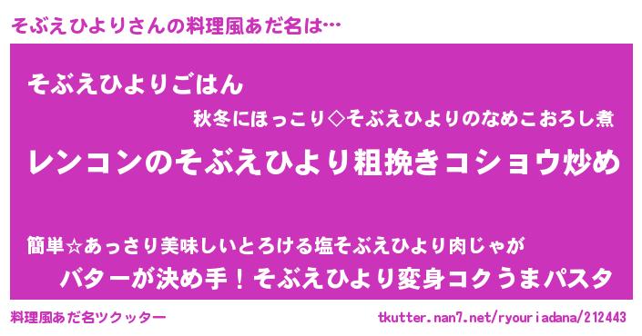 | 意味不明あだ名 | 『自称そぶえひより』 |