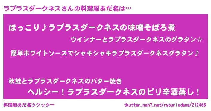 | ポケモン風あだ名 | 『ヒラプラスダークネス』『ラプチュウ』 |