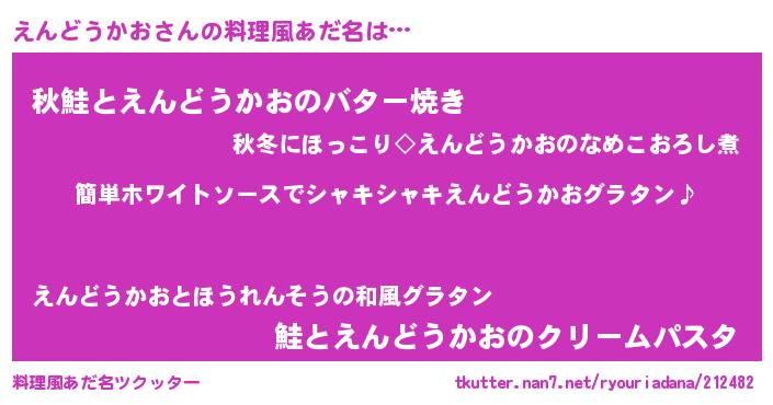| 男性向けラノベタイトル風あだ名 | 『えんどうかおの嫁は女の子じゃないと思った?』 |