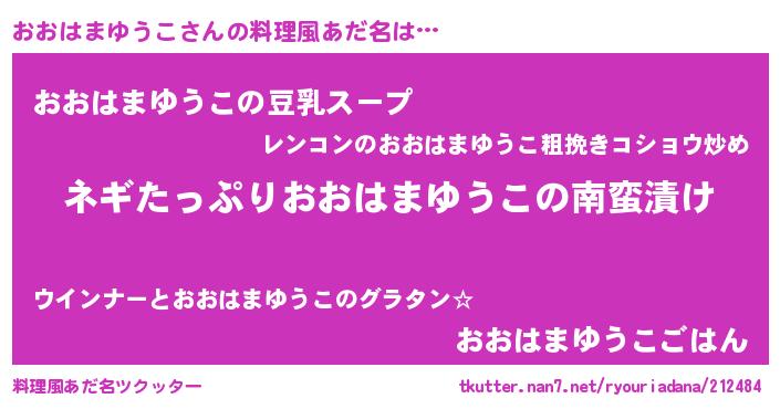 | 肩書あだ名 | 『おおはまゆうこ御曹司』 |