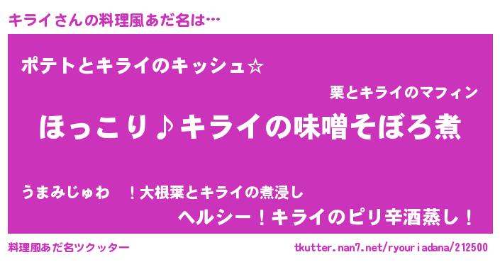 | ヘコむあだ名 | 『キラにー』『キラ太郎』『つくし』 |