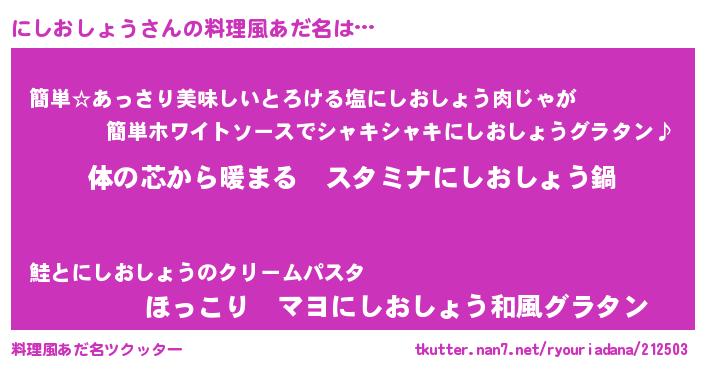 | 男性向けラノベタイトル風あだ名 | 『やはりにしおしょうの青春ラブコメはまちがっている 』 |