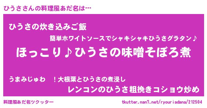 | ヒーロー風カッコイイあだ名 | 『スーパーヒウサ』『最強戦士ヒウサ』 |
