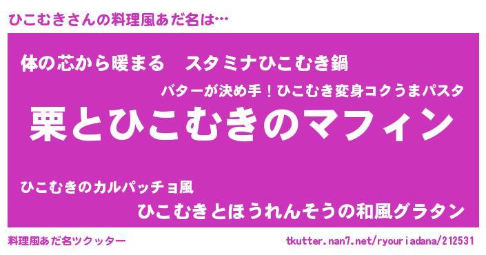 | 意味不明あだ名 | 『ひこむきフォーエバー』 |