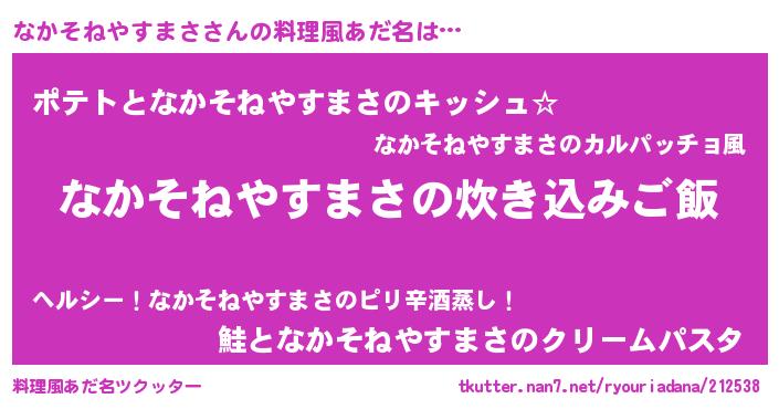 | ポケモン風あだ名 | 『メロナッカ』『ヒナカソネヤスマサ』 |