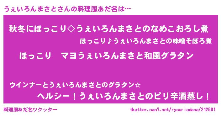 | 男性向けラノベタイトル風あだ名 | 『この素晴らしい世界にうぇいろんまさとを!』 |