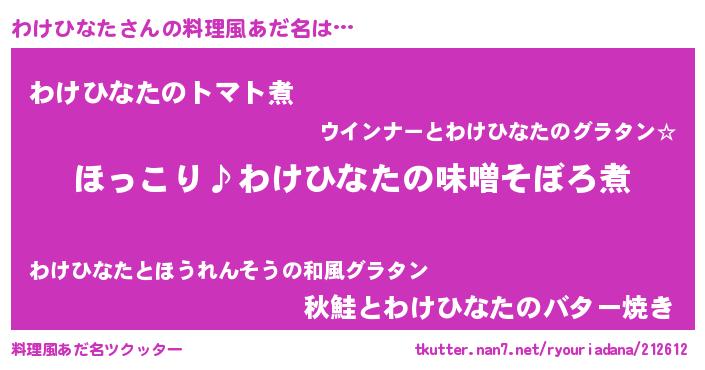 | 意味不明あだ名 | 『ペロリンわけひなた』 |
