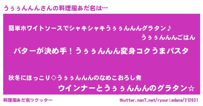 | ヘコむあだ名 | 『うぅっぺ』『酢こんぶ』『うぅにー』 |
