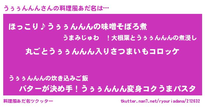 | ヒーロー風カッコイイあだ名 | 『仮面ウゥダー』『スーパーウゥゥンンン』 |