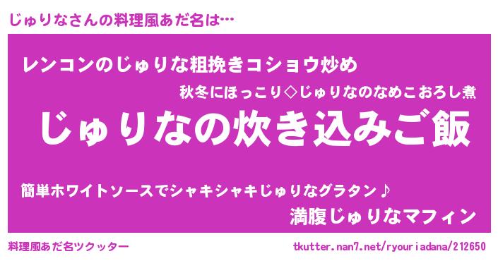 | ヘコむあだ名 | 『じゅりな(小並感)』『じゅっぺ』 |