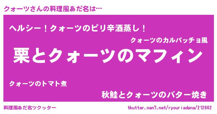 | ファンタジー風あだ名 | 『ゼクォトゥ』『クォディッシュ』 |