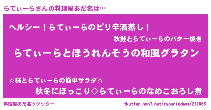 | ヘコむあだ名 | 『らてぃーら(笑)』『らてっふぃ~』 |