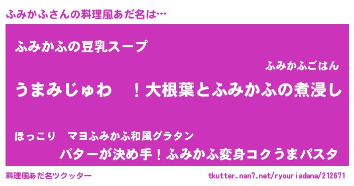 | ポケモン風あだ名 | 『フミカダネ』『ヒフミカフ』 |