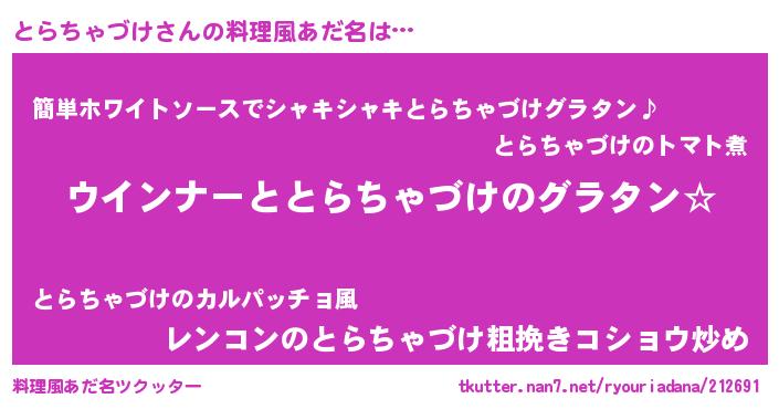 | 胡散臭い通販商品みたいなあだ名 | 『世界が平和になる高級そうな皿…その名も「とらちゃづけ」』 |