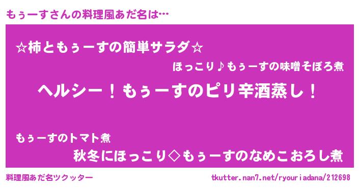 | 意味不明あだ名 | 『自称もぅーす』『ペロリンもぅーす』 |