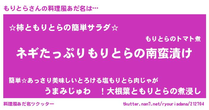 | 意味不明あだ名 | 『ペロリンもりとら』『永久保存もりとら』 |