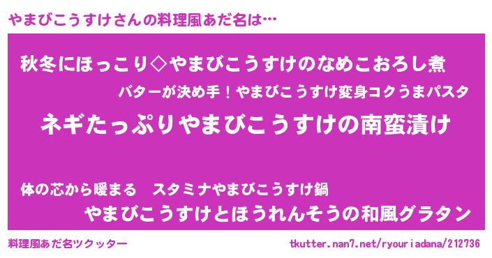 | 男性向けラノベタイトル風あだ名 | 『ヤマビコウスケアートオンライン』 |