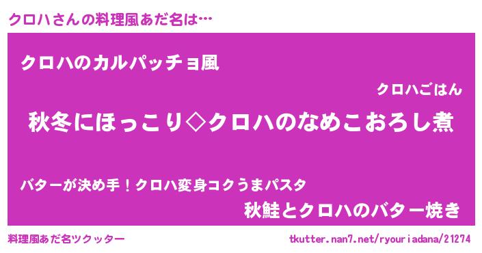| ヘコむあだ名 | 『クロハ(震え声)』『クロふぇ~』 |