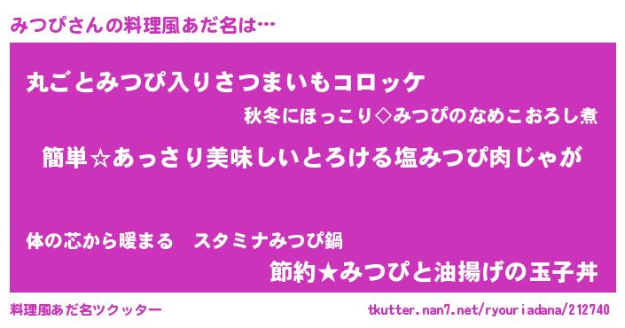| ヘコむあだ名 | 『みつぴ(笑)』『みつにゅー』『豆乳』 |