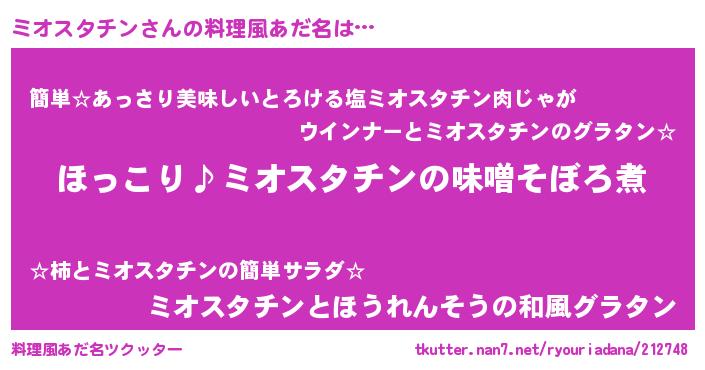 | ヘコむあだ名 | 『ミオにゅー』『ミオスタチン(爆)』 |