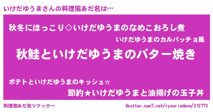 | ヘコむあだ名 | 『いけだゆうま(笑)』『いけっふぃ~』 |
