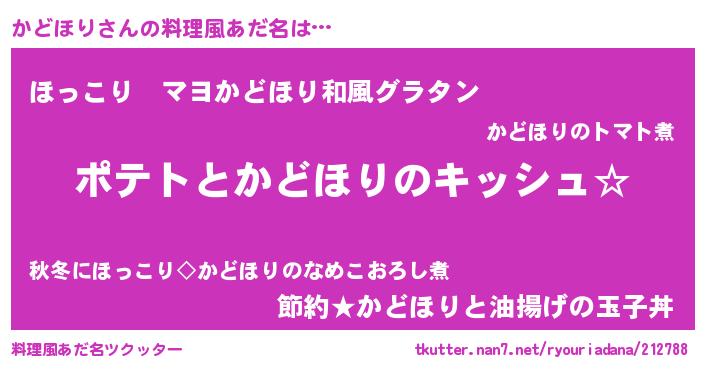 | ヘコむあだ名 | 『かどっ子』『かどにゅー』『豆乳』 |