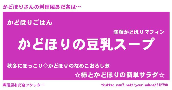 | ヘコむあだ名 | 『かど太郎』『かどほり(笑)』 |