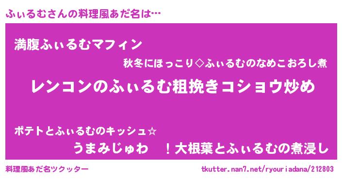 | ヘコむあだ名 | 『ふぃるむ(笑)』『つくし』『ふぃお』 |