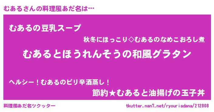 | 意味不明あだ名 | 『なめこ科むある属』『ペロリンむある』 |