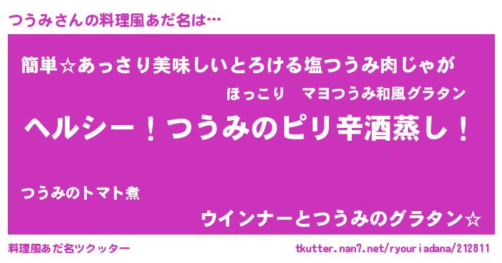| 意味不明あだ名 | 『自称つうみ』『永久保存つうみ』 |