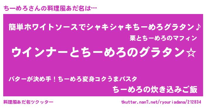 | 意味不明あだ名 | 『ちーめろフォーエバー』 |