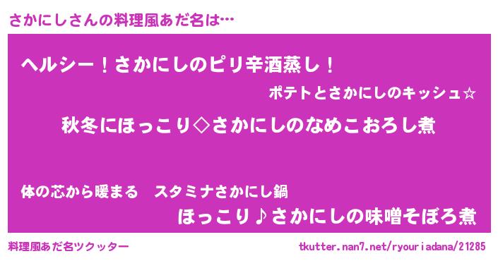 | 意味不明あだ名 | 『自称さかにし』『ペロリンさかにし』 |