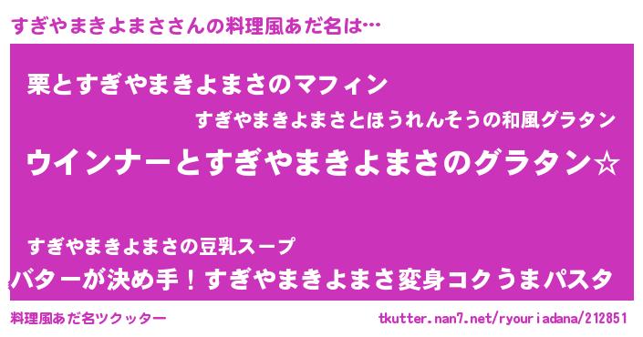 | 男性向けラノベタイトル風あだ名 | 『やはりすぎやまきよまさの青春ラブコメはまちがっている 』 |