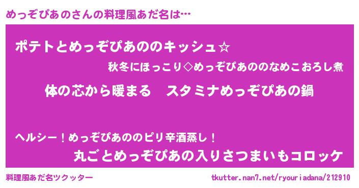 | 意味不明あだ名 | 『めっぞぴあのフォーエバー』 |