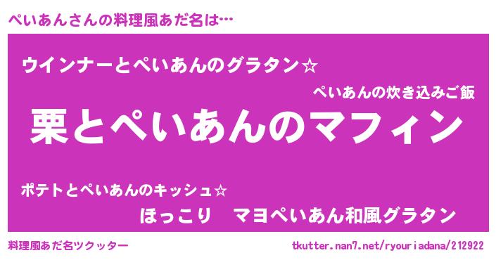 | 意味不明あだ名 | 『ぺいあんフォーエバー』『自称ぺいあん』 |