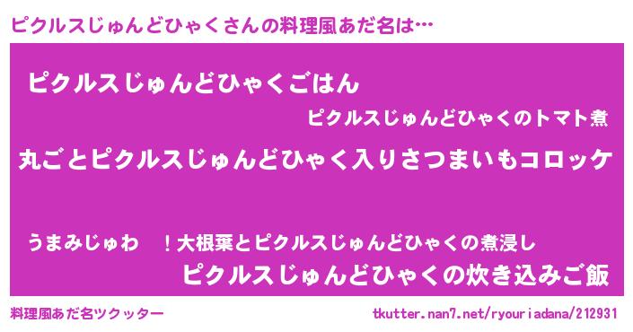 | 意味不明あだ名 | 『住所不定無職ピクルスじゅんどひゃく(62歳)』 |