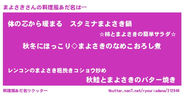 | ヘコむあだ名 | 『なまこ酢』『まよさき(笑)』 |