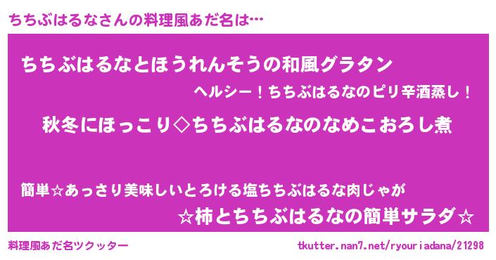 | ヘコむあだ名 | 『ちちぶはるな(笑)』『ちちもー』 |
