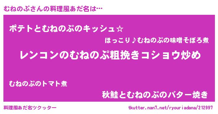 | 意味不明あだ名 | 『自称むねのぷ』『永久保存むねのぷ』 |