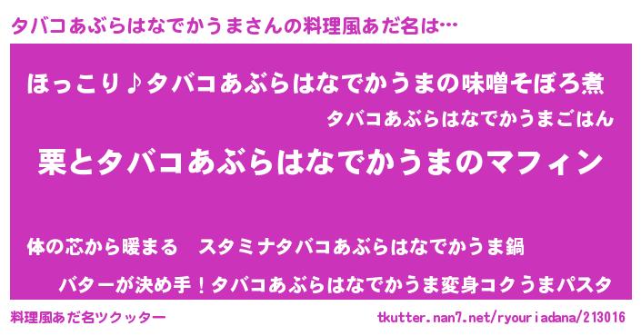 | ヒーロー風カッコイイあだ名 | 『スーパータバコアブラハナデカウマ』 |