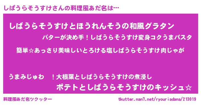 | 意味不明あだ名 | 『永久保存しばうらそうすけ』 |