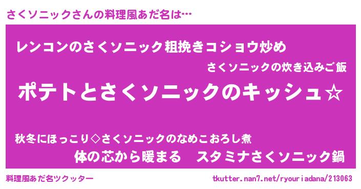 | 意味不明あだ名 | 『とにかく怪しいさくソニック』 |