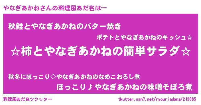 | ヘコむあだ名 | 『やなぎあかね(苦笑)』『やなにー』 |