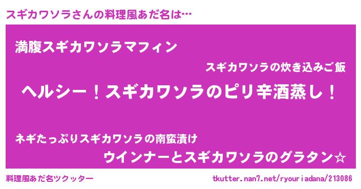 | 胡散臭い通販商品みたいなあだ名 | 『芸能人もオススメするアガリクス…その名も「スギカワソラ」』 |