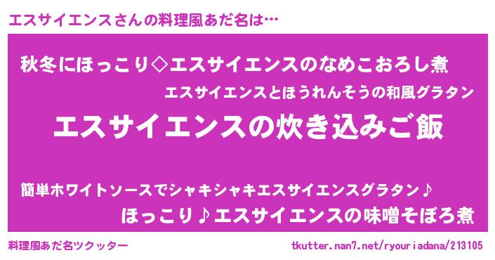 | 男性向けラノベタイトル風あだ名 | 『うちのエスサイエンスが世界を掌握している!』 |