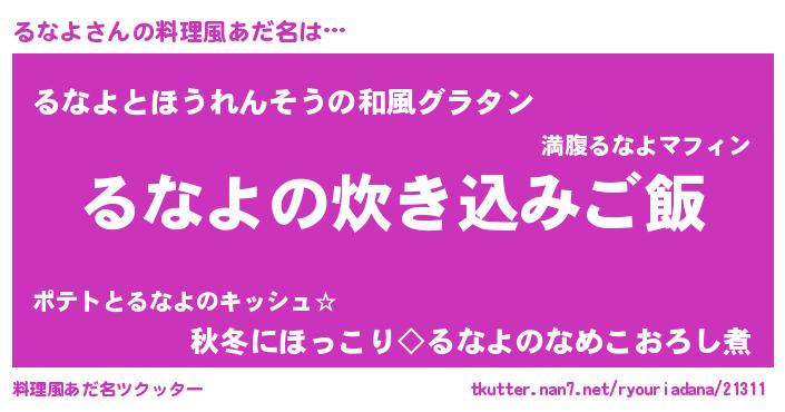 | ヘコむあだ名 | 『るなよ(爆)』『るなぷりん』『牛乳』 |