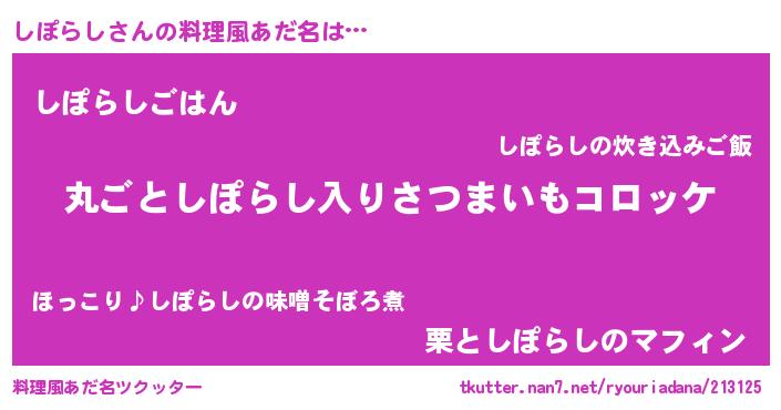 | 意味不明あだ名 | 『住所不定無職しぽらし(10歳)』 |