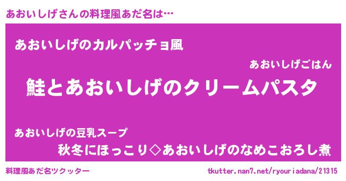 | 男性向けラノベタイトル風あだ名 | 『ノーゲーム・ノーアオイシゲ』 |